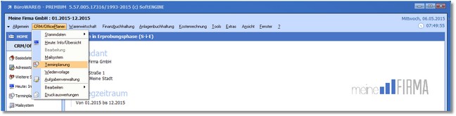 1. Klicken Sie mit der Maus im Hauptmenü auf "CRM/OfficePlaner > Terminplanung".