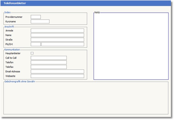 Diese Felder nehmen die Anschrift des Telefonanbieters auf.