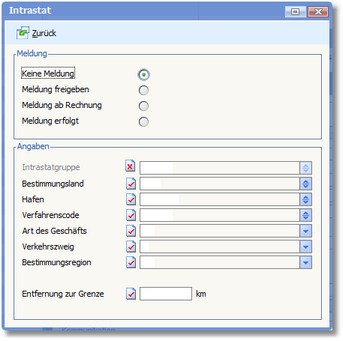 Hier können Sie die Parameter für die Intrastatmeldung hinterlegen, soweit die Ein- bzw. Ausfuhren für diese Adresse gemeldet werden müssen.