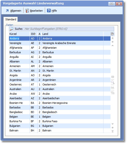 << Hier KLicken um eine Inhaltsübersicht anzuzeigen >> Navigation: OfficePlaner > Stammdaten > Basisdaten > Länderverwaltung |