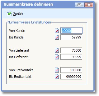 Hier wird der Nummernkreis für Erstkontakte festgelegt.