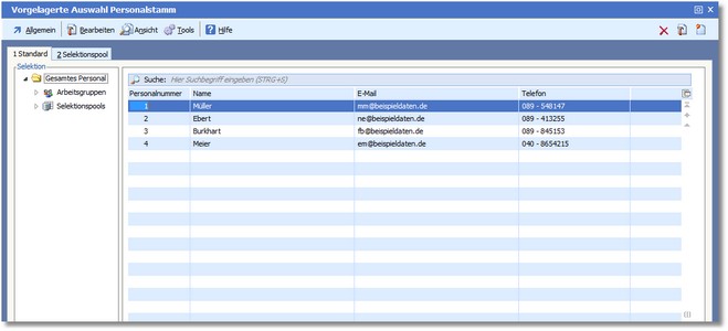 Das Programm öffnet die vorgelagerte Auswahltabelle des Personalstamms.