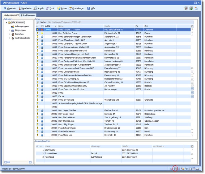 1. Klicken Sie in der Statusleiste am unteren Bildschirmrand auf das Symbol "Schnellerfassung - Adressen".