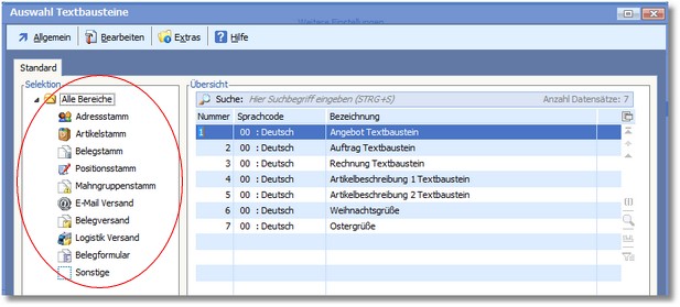 << Hier KLicken um eine Inhaltsübersicht anzuzeigen >> Navigation: OfficePlaner > Stammdaten > Basisdaten > Textbausteine > Textbausteine erfassen/ändern > Die Karteikarte "Standard" |