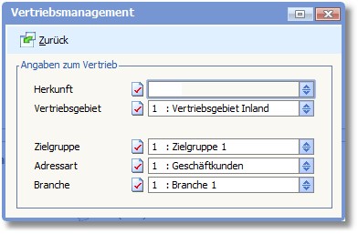 << Hier KLicken um eine Inhaltsübersicht anzuzeigen >> Navigation: OfficePlaner > Stammdaten > Adressstamm > Adressen erfassen/ändern > Die Karteikarte "Standard" (Firma) > Vertriebsmanagement |