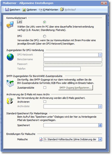 Der Bereich "Archivierung der E-Mails mit maxxArchiv"