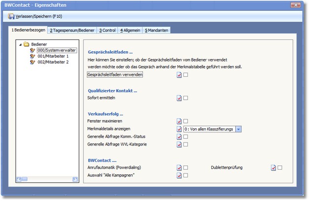 Hier werden Einstellungen für das CallCenter hinterlegt.