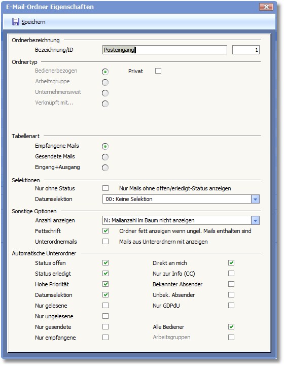 Über die Ordnereigenschaften können Sie die Einstellungen, die Sie bei der Neuanlage des Ordners festgelegt haben, anzeigen bzw. ändern.