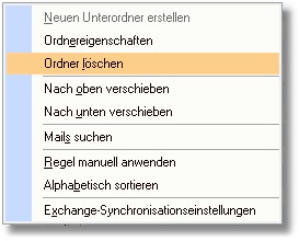 1. Klicken Sie mit der rechten Maustaste auf den Ordner, der aus der Ordnerliste entfernt werden soll. 2. Wählen Sie im Pop-Up-Menü den Eintrag „Ordner löschen".