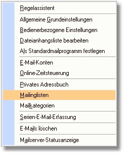 << Hier KLicken um eine Inhaltsübersicht anzuzeigen >> Navigation: OfficePlaner > Mailsystem > Mail einrichten > E-Mail-Assistent - Extras > Mailinglisten |