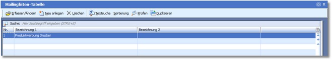 [ALT]+[F] öffnet einen Dialog zum Erfassen und Ändern einer Mailingliste.