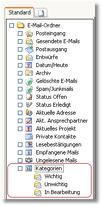 Mit Mailkategorien können Sie Mails zu Gruppen zusammenfassen und selektieren. Sie werden im Verzeichnisbaum des Mailassistenten angezeigt.