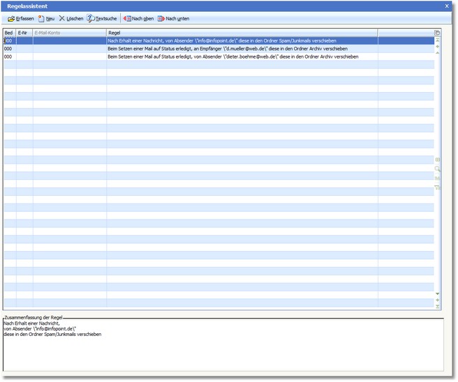 << Hier KLicken um eine Inhaltsübersicht anzuzeigen >> Navigation: OfficePlaner > Mailsystem > Mail einrichten > E-Mail-Assistent - Extras > Regelassistent |