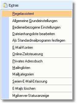 1. Wählen Sie in der Menüleiste des Mailsystems den Menüpunkt "Extras > Regelassistent".