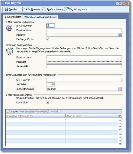 Wichtig hierbei ist, dass pro Bediener immer nur ein Exchange Konto synchronisiert werden kann.