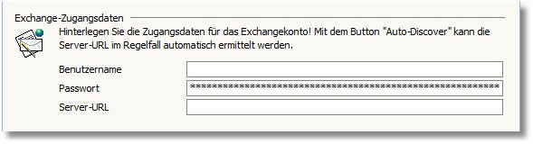 Tragen Sie die Exchange-Zugangsdaten in die vorgesehenen Felder ein.