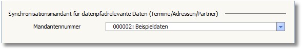 Um einen Synchronisationsmandant festzulegen, aktivieren Sie die Karteikarte "2 Synchronisationseinstellungen" und tragen Sie den gewünschten Mandanten in das Feld ein. Die Funktionstaste [F5] öffnet hier die Auswahltabelle der Mandanten.