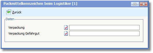 Geben Sie hier das Packmittelkennzeichen für die Verpackung von Gefahrgütern an, die beim Export der Daten an den Logistiker übergeben werden sollen.