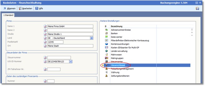 2. Im Bereich "Weitere Einstellungen" doppelklicken Sie nun auf den Eintrag "Steuerschlüssel".