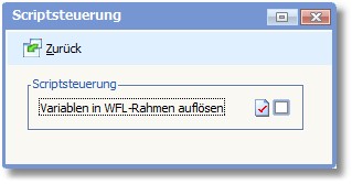 Scriptsteuerung VARIABLEN IN WFL-RAHMEN AUFLÖSEN Ist diese Option aktiviert, werden - wenn man in einem Textbaustein Scriptvariablen verwendet - diese dann in einem Workflowscript aufgelöst.