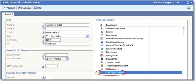 << Hier KLicken um eine Inhaltsübersicht anzuzeigen >> Navigation: Finanzbuchhaltung > Stammdaten > Basisdaten > Zahlungskonditionen |