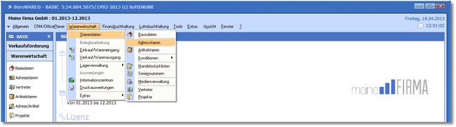 1. Klicken Sie mit der Maus im Hauptmenü auf "Warenwirtschaft > Stammdaten > Adressstamm".