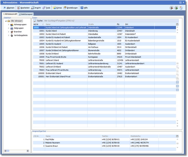 Im Adressstamm verwalten Sie Ihre Kunden, Lieferanten, Erstkontakte und Internet-Adressen über einen zentralen Dialog.