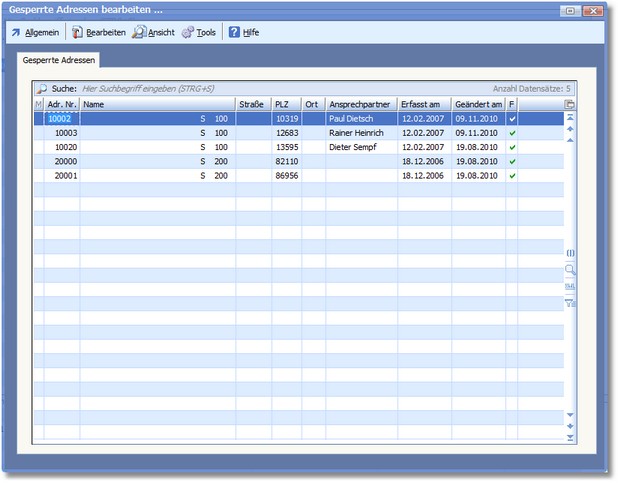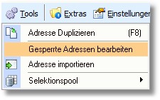 1. Klicken Sie mit der Maus im Adressstamm auf "Tools > Gesperrte Adressen bearbeiten".