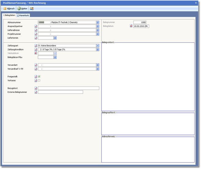 << Hier KLicken um eine Inhaltsübersicht anzuzeigen >> Navigation: Warenwirtschaft > Stammdaten > Adressstamm > Der Warenkorb |