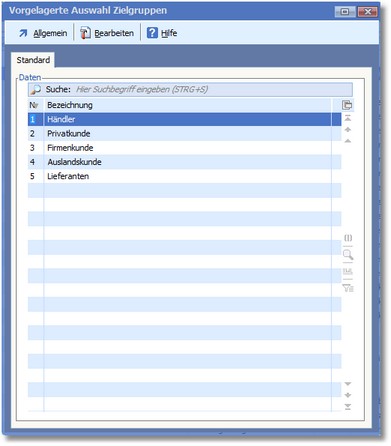 Bearbeiten Mit der [RETURN]-Taste öffnet das Programm die Dialogmaske zur Bearbeitung der markierten Zielgruppe.