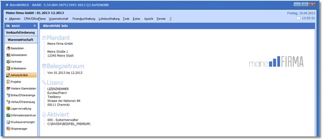 3. über die Verknüpfung "Adress/Artikel" in der Gruppe Warenwirtschaft des Arbeitsplatzes.