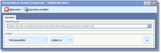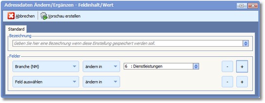 Mit dieser Funktion können Sie die Werte ausgewählter Felder für alle im Selektionspool befindlichen Adressen ändern.