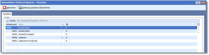7. Durch Klick auf <Änderung speichern/übernehmen> werden dann die Änderungen an den Echtdaten vorgenommen.