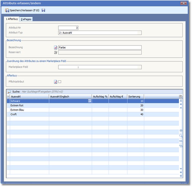 << Hier KLicken um eine Inhaltsübersicht anzuzeigen >> Navigation: Warenwirtschaft > Stammdaten > Artikelstamm > Artikelstamm - Menü > Attributverwaltung > Auswahllistenattribut |
