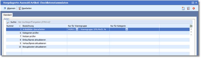Die Auswahltabelle der Checklistenstammdaten wird geöffnet.