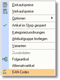 1. Klicken Sie in der Artikelbearbeitung mit der Maus auf den Menüpunkt "Bearbeiten > EAN-Codes".