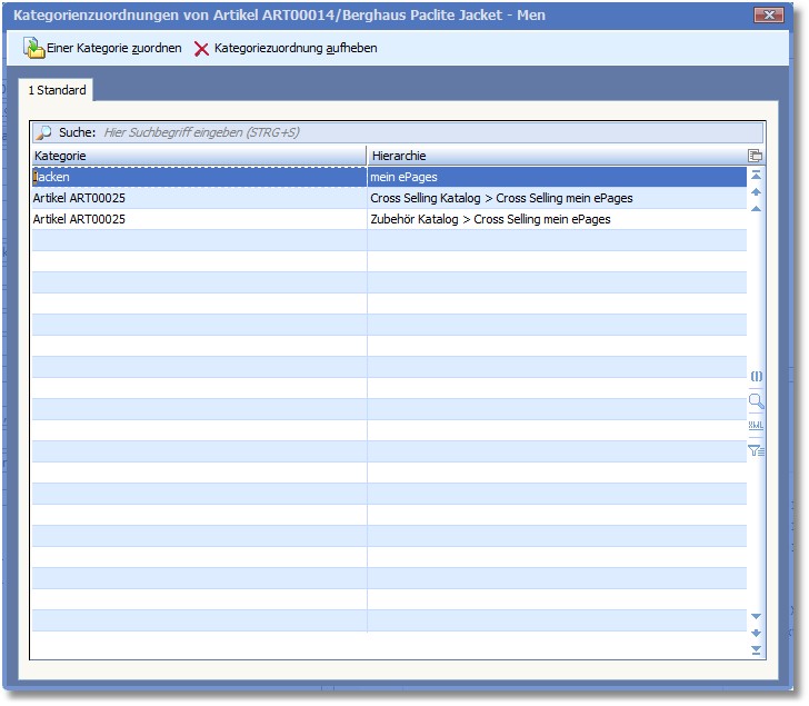 << Hier KLicken um eine Inhaltsübersicht anzuzeigen >> Navigation: Warenwirtschaft > Stammdaten > Artikelstamm > Artikel erfassen/ändern > Artikel erfassen/ändern - Menüleiste > Kategoriezuordnungen |