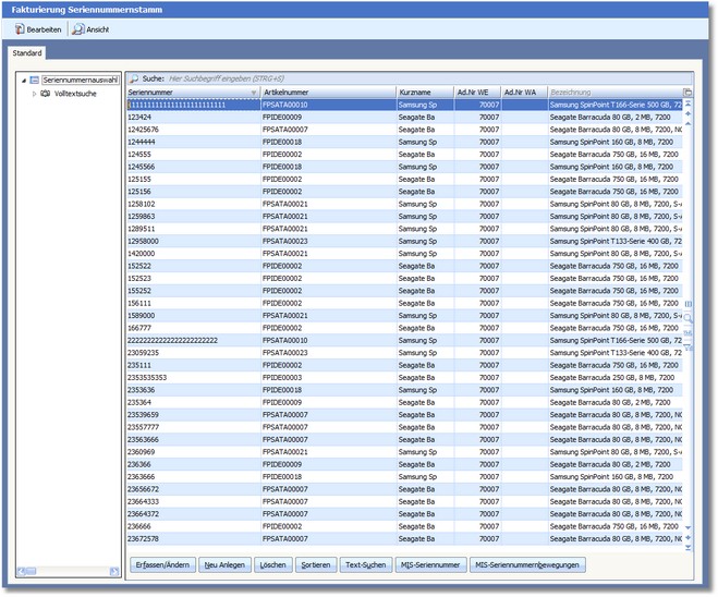 Diese Seriennummernverwaltung wurde für Handelsunternehmen entwickelt, die eine genaue Nachvollziehbarkeit von Artikelbewegungen benötigen, um z.B. Garantiefälle abzuwickeln.