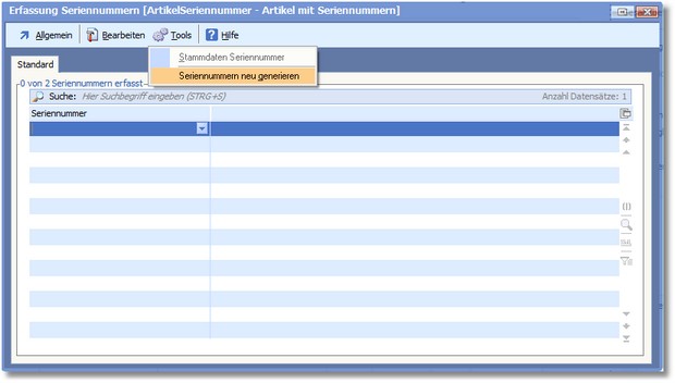 Das Programm öffnet nun das Dialogfenster "Erfassung Seriennummern ..."