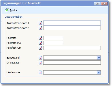 << Hier KLicken um eine Inhaltsübersicht anzuzeigen >> Navigation: Warenwirtschaft > Stammdaten > Vertreter > Vertreter erfassen/ändern > Die Karteikarte "Geschäftlich" > Ergänzungen zur Anschrift |