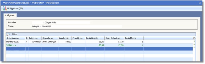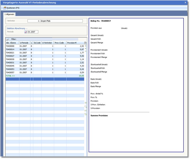Abrechnungspositionen Mit [F11] rufen Sie die Positionsübersicht für den Vertreter auf
