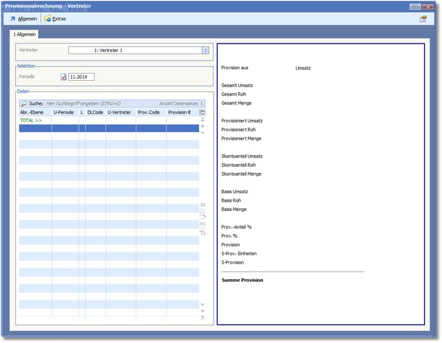 Der Dialog "Provisionsabrechnung Vertreter" wird geöffnet.