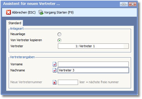 Bei aktivierter Option wird anschließend der Dialog zur Erfassung eines neuen Vertreters geöffnet.