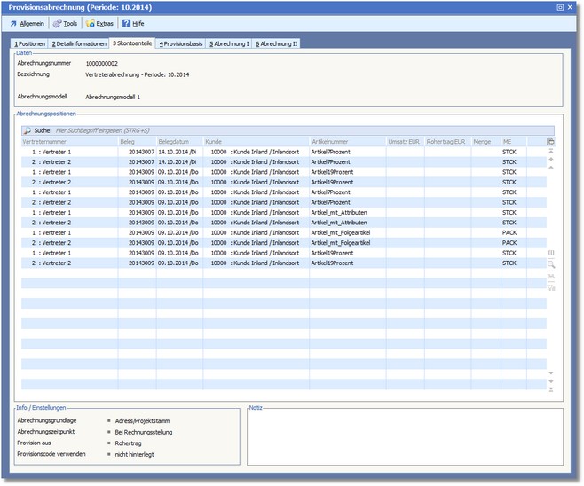 Navigation: Warenwirtschaft > Stammdaten > Vertreter > Vertreterstamm - Menü > Abrechnung >