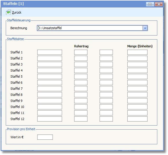 In dieser Maske können Sie folgende Parameter zur Staffelprovision hinterlegen: