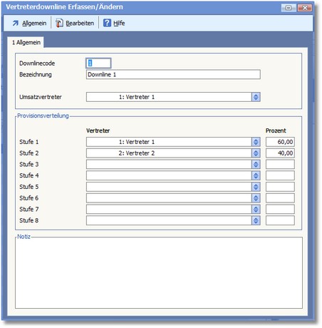 Über die Vertreterdownline können Sie die Provision eines Vertreters ganz oder teilweiseauf mehrere andere Vertreter verteilen.