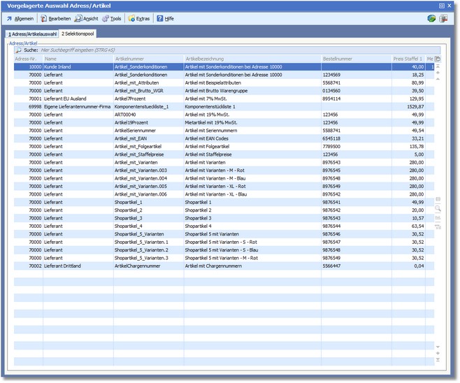 Alle Adress/Artikel des Selektionspools