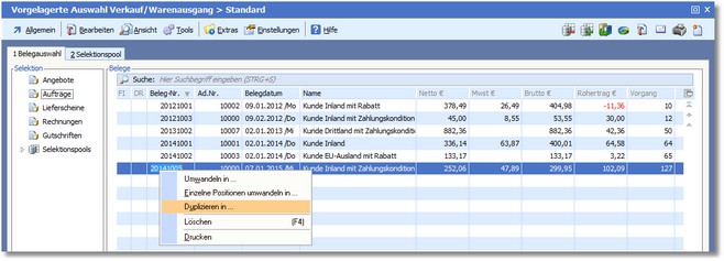 << Hier KLicken um eine Inhaltsübersicht anzuzeigen >> Navigation: Warenwirtschaft > Belegbearbeitung > Wandlung, Teilwandlung und Duplikation > Wandlung/Duplikation in der Belegtabelle > Duplikation |