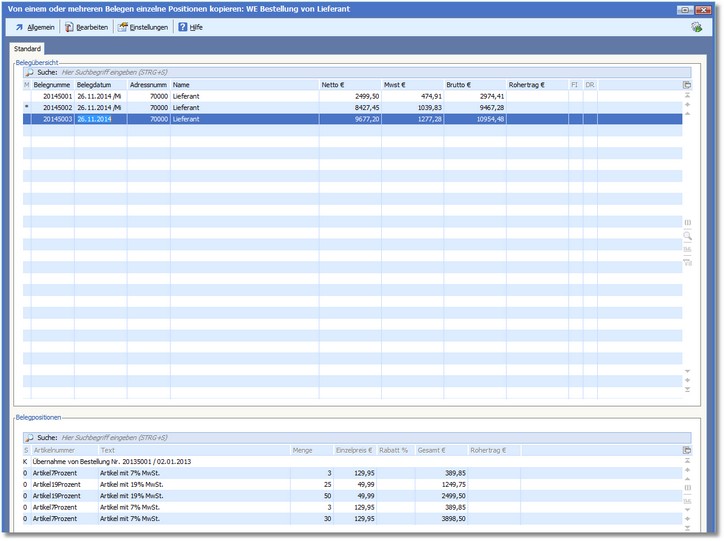 Von einem oder mehreren Belegen einzelne Positionen kopieren