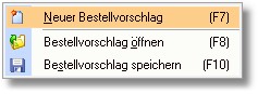 2. Im erscheinenden Popup-Menü wählen Sie den Menüpunkt "Neuer Bestellvorschlag".